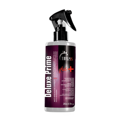 RECONSTRUCTION CUTICLE SEALING ACTION ANTI-BREAKAGE ACTION SHINE PROTECTION FOR HIGHLY DEHYDRATED, BRITTLE HAIR AND BLEACHED HAIR ANTI-BREAKAGE EFFECT WITH ITS INNOVATIVE TECHNOLOGY AND POWERFUL ANTI-BREAKAGE EFFECT, DELUXE PRIME PLUS+ OPERATES FROM WITHIN TO ACTIVELY RESTORE, RESTRUCTURE AND FULLY REPAIR FRAGILE, DAMAGED AND BRITTLE HAIR FIBER AREAS. HAIR REBUILDER. Rich in proteins and bio-functional amino acids, DELUXE PRIME PLUS+ provides resistance, elasticity and strength to dry and brittle hair. With its effective and prolonged action, it also increases hair fiber diameter. Directions: After shampooing, spray on wet hair, massage along the length and ends and let it act for 5 to 10 minutes. Rinse well. Shake before using. TRUSS DELUXE PRIME PLUS+